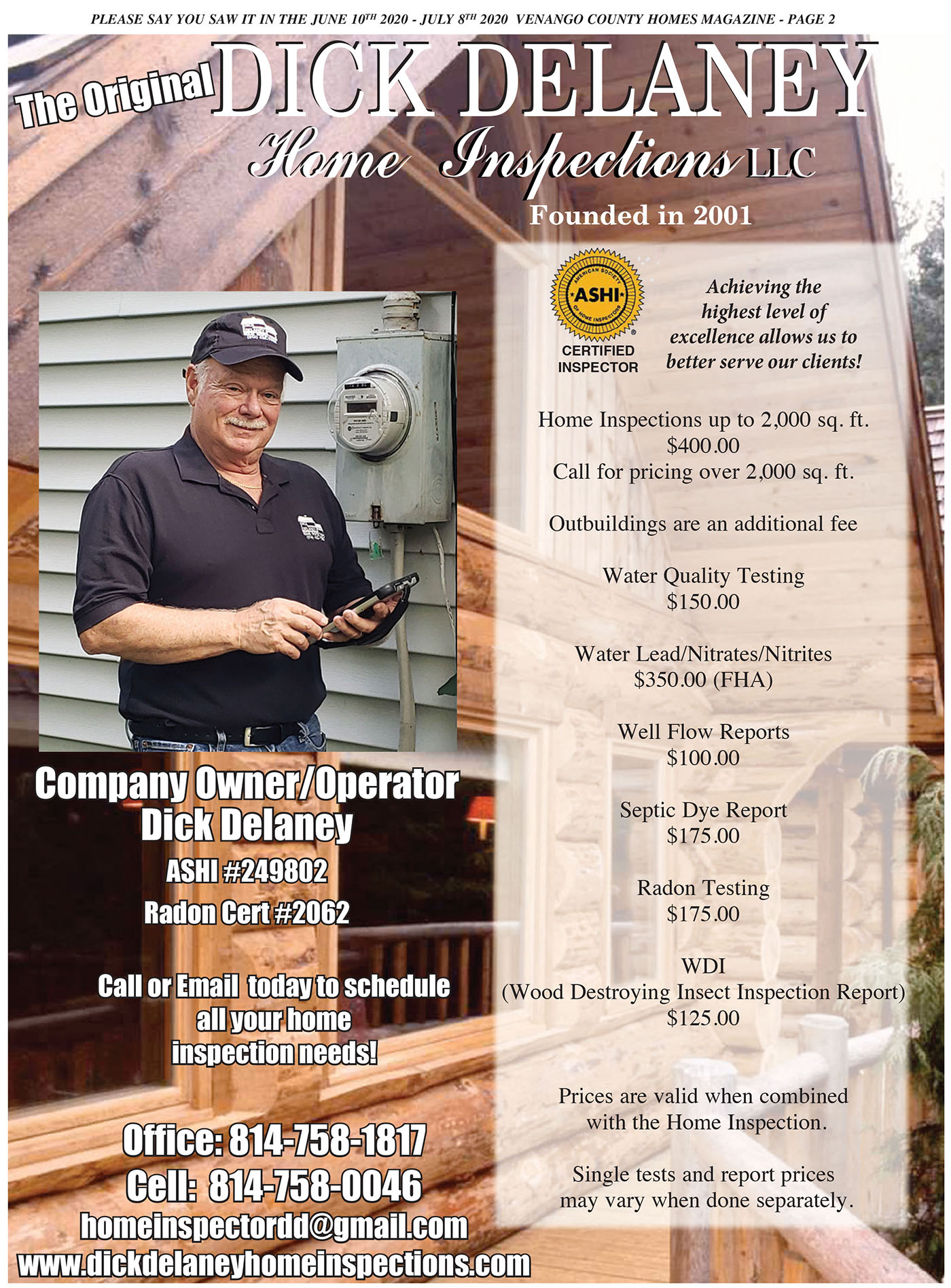 Having your new home professionally inspected by DICK DELANEY HOME INSPECTIONS LLC, as early as possible in the buying process can save you thousands of dollars on items which you may be able to have the Seller or Builder Correct It!